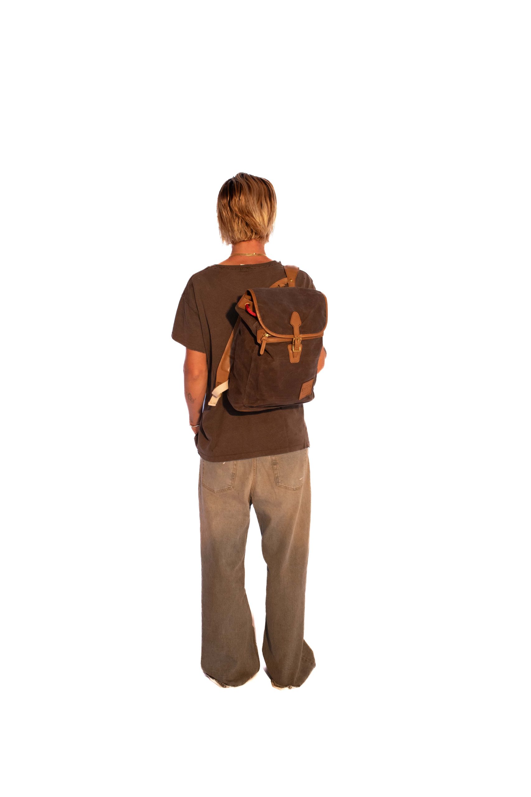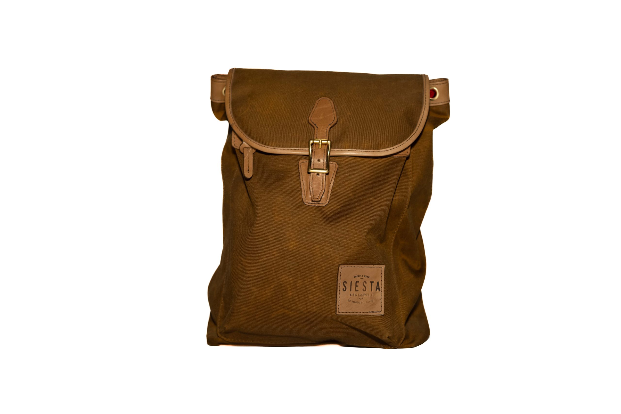 Las mochilas y los bolsos están hechos con tela encerada, lona y cintas de algodón teñidas a mano, hebillas y remaches de bronce fundido y cuero 100% Argentino. Todos son confeccionados a mano, es por esto que no hay dos exactamente iguales.